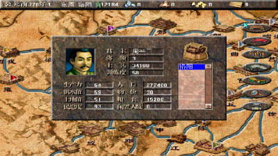 游戏开始阶段,让策略值高的武将开发土地和商业(在一个城市即可),修建市场,开发商业会使物价抬高,这样在市场里把土地开发里得来得铜矿、铁矿、石矿等卖掉,会赚得大量金钱。挣到钱后不要征召新兵,而是向同盟国借兵,待把同盟国的士兵全部借来后,再撕毁同盟,随即发兵进攻,便可不损一兵一卒歼灭敌人。此法屡试不爽,既比征兵省钱,还不用训练(最好在训练值高的地方借兵,这样做士兵增加后训练值不变),且摧城扒寨不费吹灰之力,夺城后,敌武将随即成为你的属下,可忠诚度很低,这时不要用赏赐来提高忠诚度,那样做一次只能提高一名武将的忠诚度,且提高不了多少。用酒宴,一次把所有武将都选中,而且花钱很少,效果却很明显。这样就不会有武将逃跑到别国了。