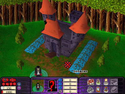 名字虽然是妖怪与乡巴佬,其实就是吸血鬼与农民嘛,策略游戏与模拟经营类的完美结合,游戏的故事发生在一个普通的小镇上。小镇已经有了一个小教堂和一些居民建筑(例如医院、警察局等)。每一个市民建筑都有与之相关的特殊作用,每个妖怪都可以通过控制该建筑来增加自己的实力。每个妖怪都有一个大本营。(恐怖恶魔Dracula的城堡,卡西莫多的教堂等等),还有一些居民居住的房子。