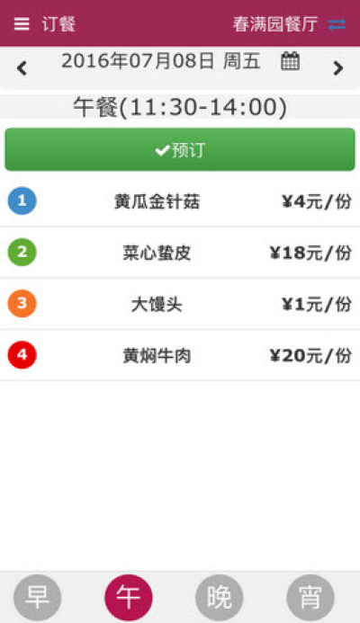 乐订餐是正奇晟业(北京)科技有限公司一款主打食堂预定的管理软件,致力于为各类企事业单位的食堂提供移动互联解决方案,帮助食堂全面提升服务和管理水平。通过乐订餐的预定功能,可以帮助食堂实现备餐,杜绝浪费;同时提高就餐效率,提升就餐体验,让员工更喜欢在食堂就餐;贴心互动,点评活动,让食堂也能做出私家菜。乐订餐让您的食堂变简单!