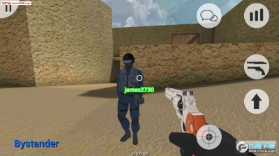 这是一款第一人称的射击游戏,非站桩,可以在地图中自由跑动。小编简单的测试了一下,不是很会玩,貌似可以创建房间,也能加入别人创建的房间进行战斗,有世界各地的玩家。