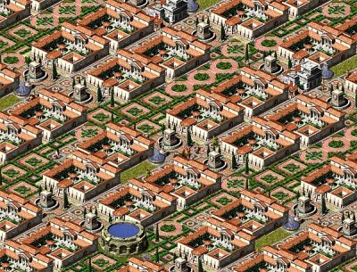 游戏开始时首先看看地图,然后心中构思好城市的总体规划,在有外敌的任务中地图边缘要留出修建Wall(城墙)的地方,空出几格地图做战场,注意耕地的分布,因为Wheat(小麦)、Olives(橄榄)、(Vines)葡萄等农场必需建立在耕地上面,Clay pit (粘土坑)、Marble quarry(大理石采石厂)、Iron mine(铁矿)、Timber yard(伐木场)都需要靠近原材料的产地,工厂和原材料生产以及仓库最好修建近一些,提高生产效率。
