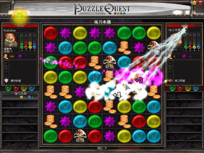 在《益智之迷:战神的挑战》中玩家需要控制自己的人物在各个村庄和城镇中打听情报、购买装备,而进入迷宫探索宝物和敌人等RPG的要素也包含在游戏中,只是战斗全变成了连珠游戏。把其他类型的游戏要素溶入RPG中已经是一个被滥用的话题了,但是你试过用连珠PUZ游戏的方式来玩RPG么?