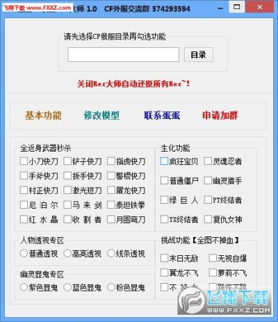 打开REZ大师后选择CF目录 然后勾选功能 即可上游戏