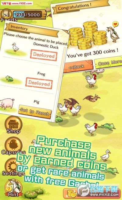 只需要3步就能享受游戏乐趣!可以把赚来的钱买入新种的动物,也可以通过免费扭蛋获得高稀有度的动物!