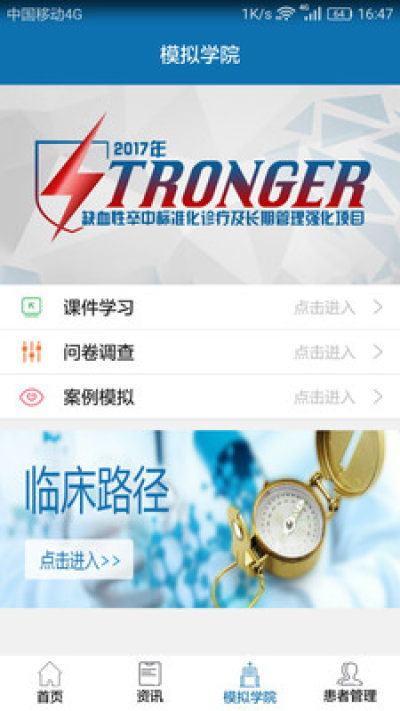专门为医生打造的学习和工作的平台。致力于提供脑卒中疾病的前沿医药信息,并可全程化管理患者,减少疾病的复发率。让医生更迅速的提升自己的专业技能和工作效率。