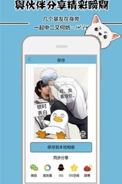 银魂动漫相机是一款银魂主题的创意摄影APP!千万银魂迷的选择,神奇的动漫滤镜,最强银魂贴纸相机,无论如何请记住我们永远都是伙伴,内置高能动漫贴纸,致力于打造出最IN最有趣的银魂特效相机。