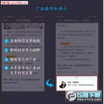 3、分享汇,让朋友圈的任意文章都带上你自己的广告;