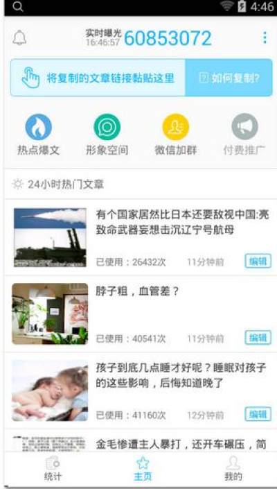 分享汇app是一个通过抓取文章可以免费植入广告再投放到各大平台,直接复制微信公众号文章链接,分享到分享汇app,添加微商自己的微信号、微信二维码、产品链接等推广信息,分享到朋友圈即可,微信文章在朋友圈具有更好的传播效果,因为为大家推荐这样一款免费微信文章广告植入软件,还有相应的数据统计分析功能。