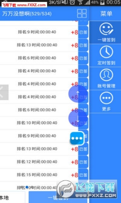 最快的贴吧一键签到工具,抢签利器,经验+8,签到过程十分节省流量。