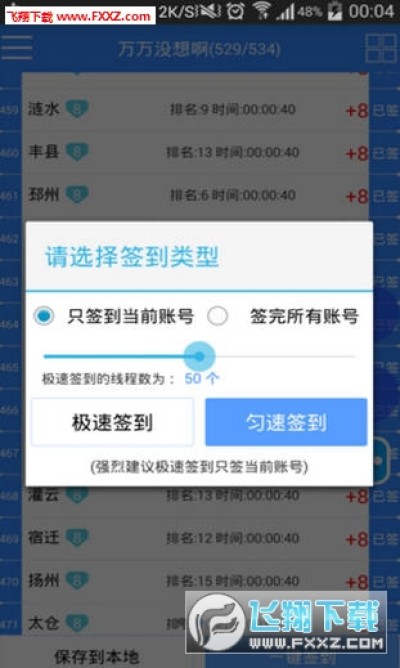 5.极速签到线程数越多签到越快,但要根据自己的网速设置适合的线程数,否则有时会签到出错。