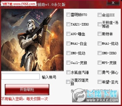 火线精英金牌刷枪辅助是一款最新可用的火线精英刷枪辅助,辅助可以为火线精英玩家们免费刷到雷明顿870、命运III、XM8-炫动、XM8-ZERO、Gail-灵猴、MP5-灵猴等武器。辅助使用简单,只需输入账号,不需要输入密码即可刷枪。有需要的玩家快来下载吧!
