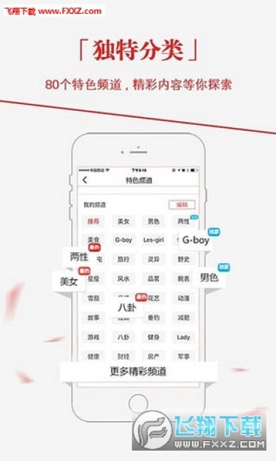 80个特色频道、14个视频二级分类全方位满足你的阅读喜好,无论是迷恋穿搭美妆减肥自拍的小仙女,还是关注家居烹饪备孕育儿的好太太,无论是热衷健身摄影夜店的潮流达人,还是驰骋商界运筹帷幄的职场一把手,二次元、LGBT、星座控、追星族都能找到自己的小世界!
