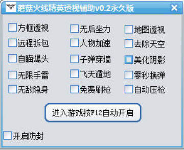 火线精英蘑菇辅助是一款专为火线精英玩家打造的游戏辅助,该辅助拥有透视瞄准,子弹穿墙等功能,是玩火线精英的必备辅助软件!