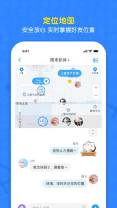 【地图小应用】定位地图。安全放心,实时掌握好友的位置。创建星标地点,好友接近自动发通知,聚会旅游必备。