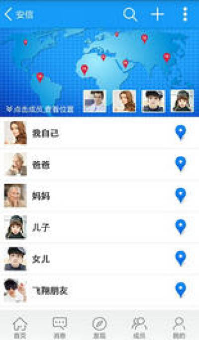 安全手机定位:如为儿童、老人等家人手机安装安信,随时查询所在位置。