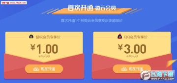 1、首次开通微云会员”每个QQ限领1次。超级会员及QQ会员分别可享1元及3元超低特价开通微云会员限1次。
