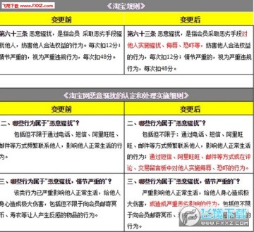 淘宝新规中,“恶意骚扰,是指会员采取恶劣手段对他人实施骚扰、侮辱、恐吓等,妨害他人合法权益的行为”。“相比2012年的规定,新规定增加了侮辱、恐吓两种情形,管控范围进一步扩大。新规不仅强调骚扰行为发生的频次,更重要的衡量标准是是否给他人身心造成极大伤害。”宗布说。 对于通过短信、阿里旺旺、邮件等方式或在评论、交易留言板中对他人实施侮辱、恐吓的行为,宗布表示,“即使仅有一次,一经核实也将受到一般违规处罚,情节严重的,淘宝会进行查封账户的处置。”