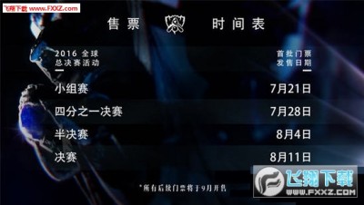 lol全球总决赛马上就是要在美国举行了,能去参加观看的小伙伴们有福了,但是不能去的也别泄气,飞翔小编给大家带来了lol全球总决赛2016赛程表,大家可以下载了解lol全球总决赛的赛程安排,随时关注2016LOL全球总决赛的信息。