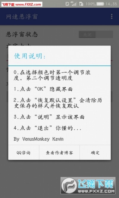 《网速悬浮窗》官方版会实时显示当前网速,帮助用户监控流量消耗速度。可自定义字体大小,颜色、位置、自动保存设置等。