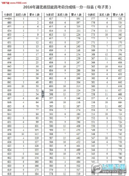 2016年湖北省技能高考总分成绩一分一段表
