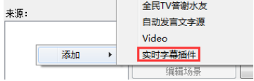 l 按照上面的步骤安装好插件后,启动OBS, 然后在OBS主界面的“来源”列表窗口里面点鼠标的右键,然后点击弹出来的“添加”,再在里面点击“实时字幕插件”添加这个源。