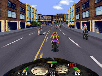 游戏的画面和音响效果非常逼真,如疾驰而过的汽车呼啸声,摩托车的引擎声和转弯时轮胎与地面摩擦而产生的声音。而且它在游戏中加入了对抗成份,比赛中你可以使用拳、脚去干扰对方,使其落后于你,而且对手会主动攻击你。
