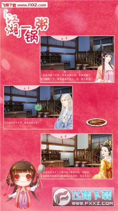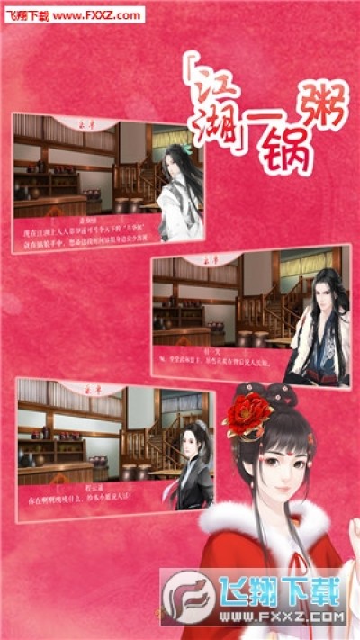 《江湖一锅粥》是一款古风穿越乙女向剧情文字手游。你的穿越,究竟是意外或是命定?粥铺老板“纪晚晚”的未来已经交到了你手中~开始这场奇葩与怪胎齐飞,插科共打诨一色的江湖之旅吧!