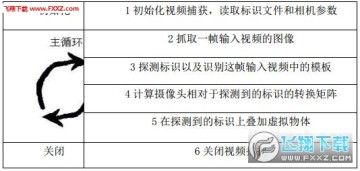 其中的初始化例程 init 包含的代码可以初始化视频捕捉,读取标识卡信息和摄像机参数信息,以及设置图像窗口。这相对于《开发原则》中的第一步。接下来,我们通过调用视频开始函数 arVideoCapStart 输入实时状态。再接着,函数 argMainLoop 被调用,这个函数启动了主要的程序循环,通过键盘事件与函数 keyEvent 结合使用,通过主要的图像显示循环与 mainLoop 结合使用。函数 argMainLoop 的定义在文件 ggsub.c 中。