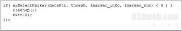 接着函数 arDetectMarker 被使用以搜索整个图像来寻找含有正确的标识模板的方块: