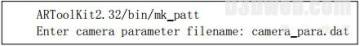 一旦新的模板制作完毕,改变 bin 目录,运行 mk_patt 程序(仅在控制台模式下)。系统会提示你输入一个摄像机的参数文件夹名字。输入文件夹名:camera_para.dat。这是默认的摄像机的参数文件。