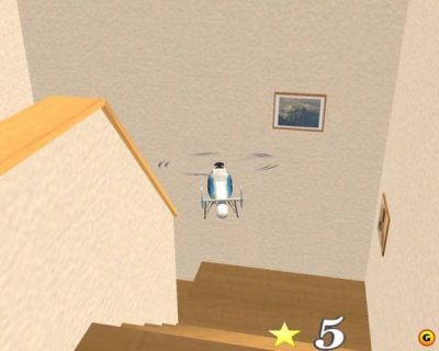 这绝对是一款操作性很强的遥控直升机游戏,你要控制着你的小直升机起飞然后降落到指定的平台上,降落速度过快或者碰到什么物体都会使你的飞机坠毁。游戏中虽然没有敌人,但控制直升机也是绝不会象你想象的那么简单,穿越屋中的各种障碍挑战,在最快的时间到达终点吧!