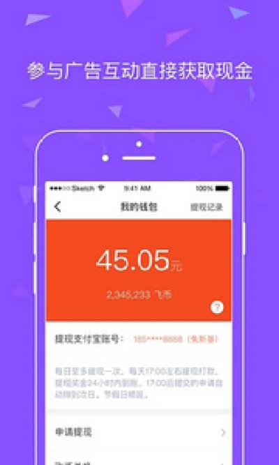 看广告赚钱!无限红包天天抢!新用户注册就送5元。“飞报”是中国首款基于地理坐标定向,商家自助精准投放广告、生活信息的手机应用软件,采用了广告投放的“定位、定向、定点”等专利技术,实现了“客户在哪里,广告投哪里”的突破。开启了用户通过看广告获取广告费的“看广告赚钱”模式。彻底解决人们“讨厌看广告”的心理,被《哈弗商业评论》《福布斯》评为目前世界最有效的广告发布模式。
