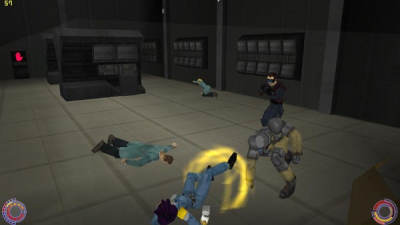 由于这关是游戏的开始,所以在这个版图中的敌人不会太强。在这关中Shinatama会不时向玩家发出提示,另外所有被锁上的门都是由一个有图形的控制台,这些控制台是可以把这些门打开,而不用玩家跳来跳去来找的。这些控制台的位置大多都是在房间当中,因这个版图中只有三层,每一屠就只有两个房间,所以只要到每一房中找找,就可以找到。另外在游戏中会出现一些平民,这些平民会给玩家一些回复药和子弹,不要因为他们碍事而把他们杀死。当玩家到了最后的一个货仓时,因为要阻止Syndicate的货车离开,所以这里就开始有时限,玩家就要在三分钟之内,走到第三层上,在那里会有一个画了有起重机的控制台,使用控制台之后,就会自动过关。