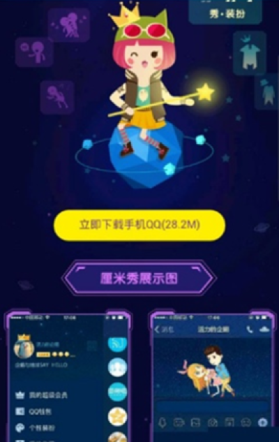 QQ厘米秀是手机QQ推出的新功能,其基本产品理念是赋予用户QQ头像之外的可定制形象,并能够产生形象之间的互动,围绕这套虚拟形象互动产品,可以构建起表情形象商店、道具系统等,并能够通过引入影视游戏元素带来IP价值。比如你可以用自己的“魔兽兽人”厘米秀打飞对方的“宋仲基”形象,基于社交关系链的这套产品能够带来很多新的使用场景。