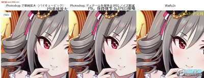把缩小的锯齿状图传到waifu2x的话,“现在给你的图是某张图缩小一半的图。求缩小前的图哦”,人工智能就会将噪点和锯齿的部分进行补充,生成新的图。