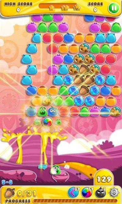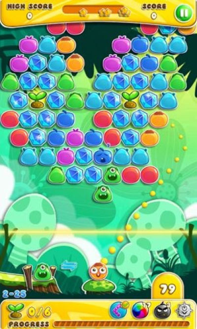 *和“泡泡龙”相似,你需要把三个或以上的泡泡聚在一起,让它们从天而降,获得分数。