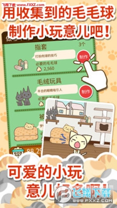《猫咪的毛修改手机版》是一款以萌萌哒猫咪为主角的模拟养成类手游,也是一款收集猫毛制作小物品的趣味休闲游戏。在这款游戏中,玩家需要收集大量喵星人身上的毛,然后将它们制作成各种非常漂亮的商品,进行买卖,对于这么可爱的游戏,还在等什么呢?玩家点击喵星人就能收集猫毛,收集猫毛球制作商品萌萌哒的喵星人一动,就会掉出毛球,非常呆萌,赶紧拿走吧!游戏玩法简单温暖,玩家要饲养猫,随心所欲地抚摸你的爱猫。随着玩家的动作,猫毛会逐渐掉落在地板上,用手指轻轻滑过,可以将它们一并收集起来。喜欢这款全新玩法休闲养成类游戏的朋友,快来制作属于你的独特的猫毛小饰品吧!