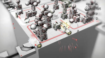 这个游戏的特色就在于,出现的敌人被打死以后有一些并不会直接爆炸,而是就地瘫痪变成你建造炮塔的材料。