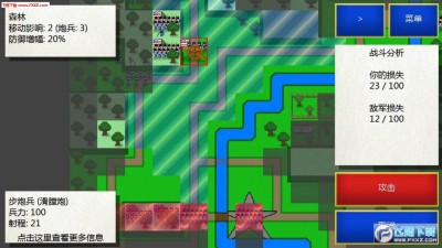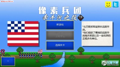 像素风的策略战争游戏,重现美国经典的南北战争。游戏虽然体积小巧,但游戏性却很不错。除了各种兵种相克,还会根据地形和士气属性来影响你的攻击。所以要非常注重你走的每一步,合理运用战术。