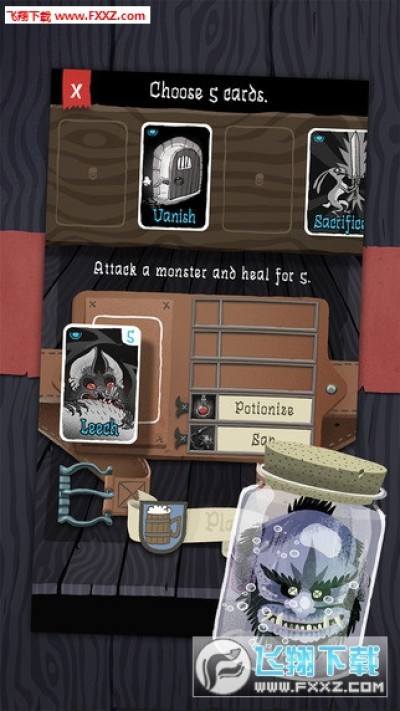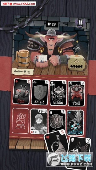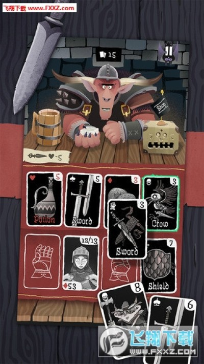 《卡牌潜行者英文官网版》游戏当中的卡牌主要分为道具类、武器类、功能类、怪物类。其中道具类可以帮助玩家恢复血量,武器类则可以放置在手持区当中拖动之后即可进行攻击,也有盾牌类的卡牌可以帮助玩家抵御一定数额的攻击,而功能类卡牌每一张都都有其专属的功能,善于利用它们可以在转瞬间改变场上的局势。值得注意的是,游戏当中怪物卡牌并不会主动进行攻击,玩家需要拖动他们对自己进行攻击,玩家可以让它们攻击防具来减少自身所受到的伤害。由于每一次游戏发出的牌都是不同的,而且攻击与被攻击都是完全由玩家所决定,所以游戏当中对于策略性要求比较高,玩家还必须要使得发牌区仅剩一张牌才可进行下一轮的发牌。对具有全新卡牌玩法卡牌对战类游戏感兴趣的小伙伴,赶紧来下载试玩吧!