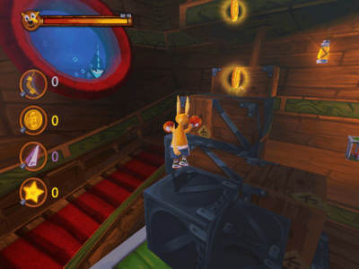 游戏中都是针对小袋鼠Kao最害怕的事物而设计成游戏关卡,小袋鼠怕鬼就来个幽灵船、怕水就来个八爪章鱼大冒险,甚至还有疯狂猎人拿着来复枪要把小袋鼠轰下来作成标本,看来这个追寻勇气之旅看来不简单咧。在游戏中小袋鼠Kao的动作也十分多样化,除了基本的跑跳拳击之外,甚至还有潜水、划船、滑雪、飞行。