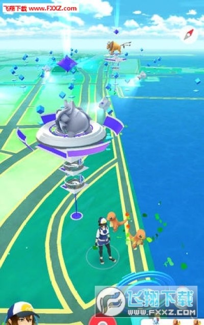 就像标题所说的一样,终于能够实现在像游戏或者动画中和小精灵一起进行旅行。玩家到登录在poke stop上的小精灵的现实世界中的遗迹或者建筑物,在智能手机上捕捉小精灵。捕捉小精灵的时候,玩家向前走捕捉,所以说玩家自身的行动力也是很重要的