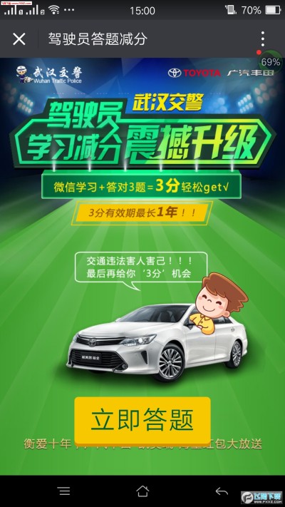 日前武汉交警官方网站推出了一项微信学习答题减分活动,广大武汉籍驾驶员只要在微信平台答对三题将可直接获得驾照3分的减免。《武汉驾驶员答题减分平台》是这个活动的快捷app,需要的朋友赶紧来下载吧