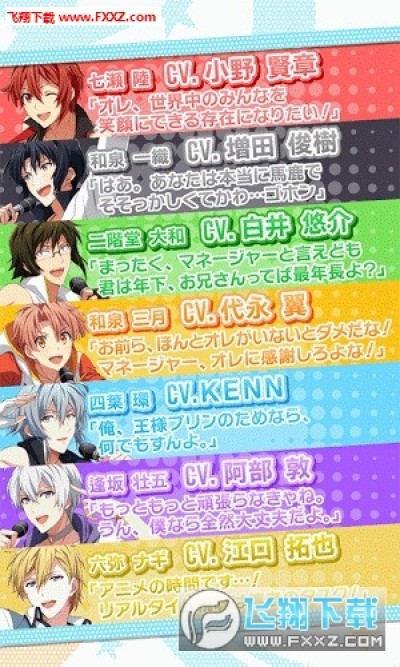 《IDOLiSH7官方日文手游》是由推出过偶像大师系列等大人气作品的万代南梦宫(BANDAINAMCO Online)公司发行的女性向男团偶像音乐类手机游戏。担任游戏开发的geechs公司有“Show By Rock!!”等人气作品,而担任角色原案的著名人气少女漫画家种村有菜老师也会为大家带来美好的视觉享受。对以音乐偶像养成类游戏感兴趣的玩家,赶紧来把众多的动漫男神收入囊中打造成属于你的音乐偶像团队吧!