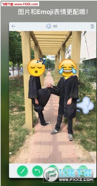 5、当然,你也可以发挥你的创意用emoji表情进行创作,可以给照片贴上emoji贴纸,比instamoji更好用,相信你根本停不下来!