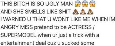 这个女表子实在太他妈丑了,闻起来像一坨屎,我警告你,你绝对不会喜欢我生气的样子。她假装自己是个演员,其实只是在娱乐圈耍了一些雕虫小技而已——她舔了一些(屌)。渣翻译(转)