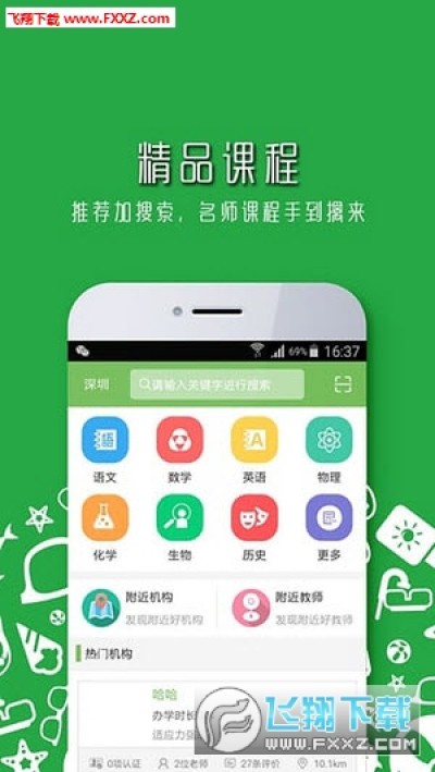 快速定位,并有专门的模块为您推荐附近的热门机构、教师与课程。