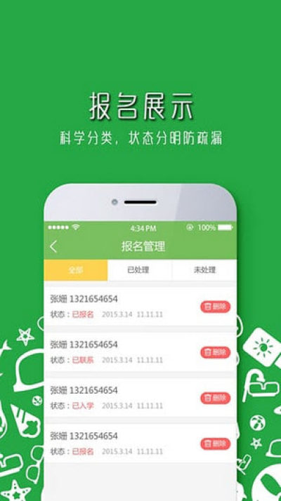 给机构和老师提供开班、师资等信息的全方位宣传展示,打造一整套的互联网招生系统。