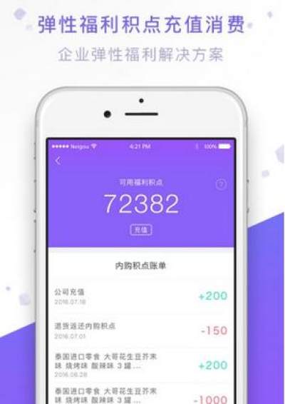 3.福利积点:福利积点先消费、后结账,支持企业自主分配,可针对性对员工进行实时奖励分配。