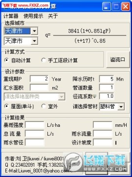 用于国内不同城市的暴雨强度计算、目前已集成了国内各省市的一些较大城市的数据资料,可进行屋面(单雨水斗系统)、室外雨水流量、流速、管径的计算。